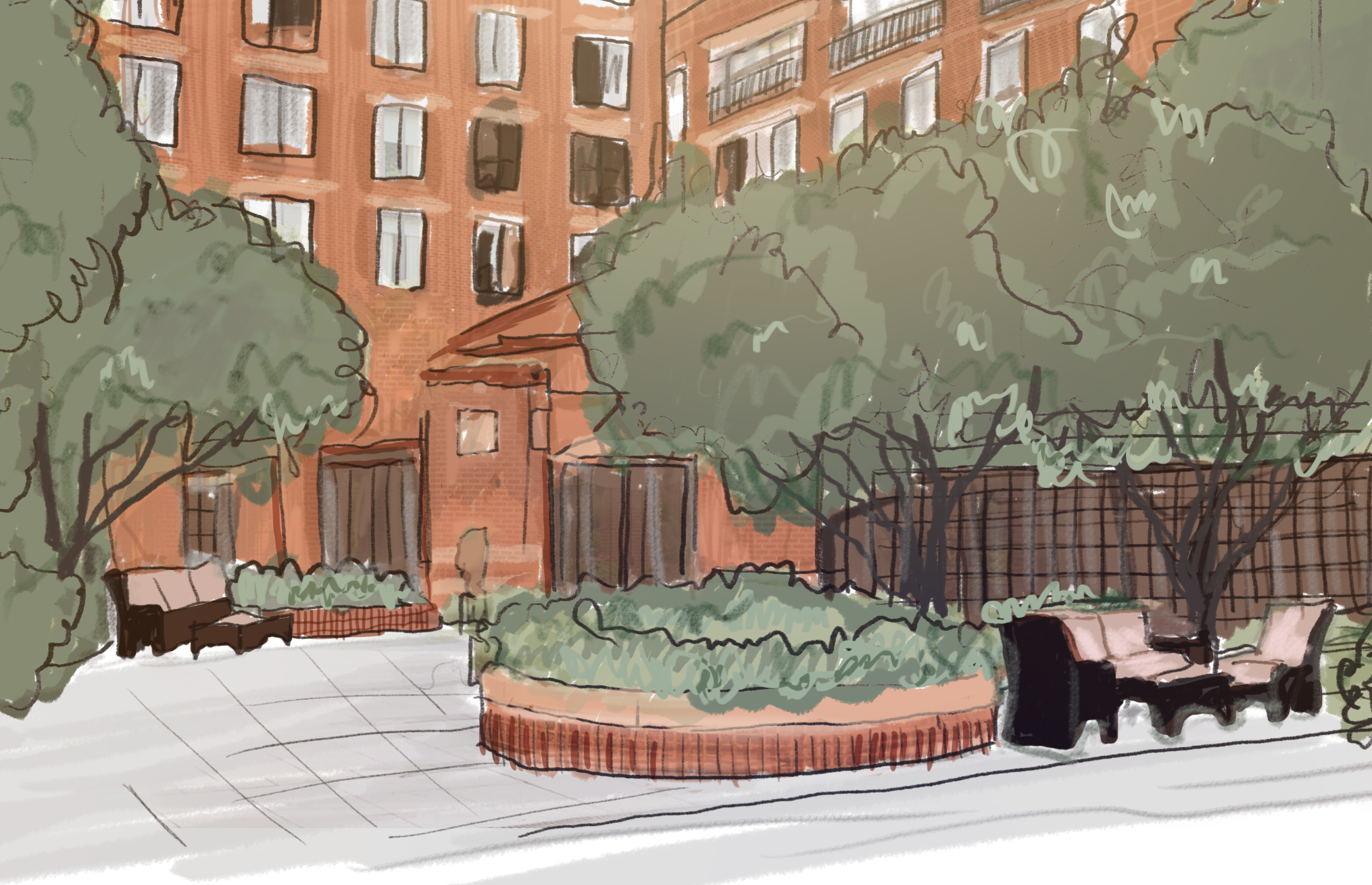 The Four Seasons Hotel outdoor courtyard, Washington, DC, late afternoon, November 2016