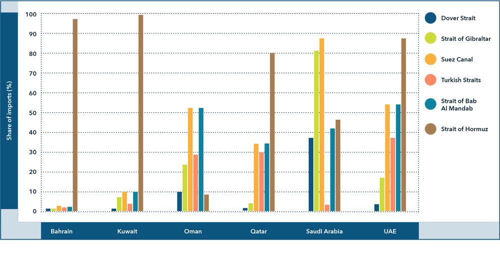 Figure 2: Share of Wheat Imports into GCC Countries Transiting Selected Maritime Chokepoints, 2015