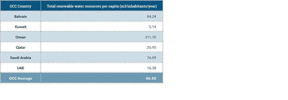 Table 2: Total Renewable Water Resources per Capita in GCC Countries