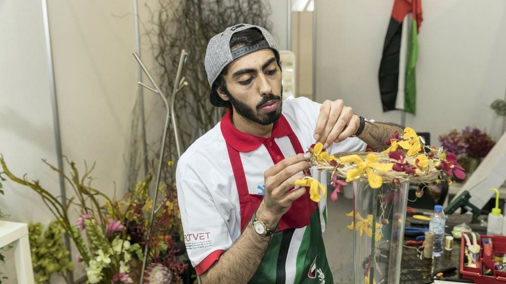 Eissa Al Marzooqi, 22, competed in floral arranging at WorldSkills 2017 in Abu Dhabi. Antonie Robertson/The National